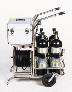 ●組成部件:長管推車、長管繞盤裝置、氣瓶、氣源分配器、減壓器、壓力顯示裝置、長管、面罩、供氣閥、便攜式腰帶。