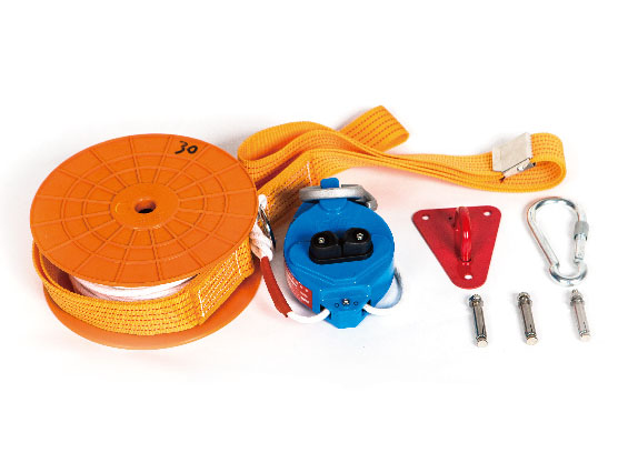 ·救生緩降器是一種可使人沿(隨)繩(帶)緩慢下降的逃生裝置。一般由掛鉤(或吊環(huán))吊帶、繩索及速度控制器等組成,它可有專用安裝器具安裝在建筑物窗口、陽(yáng)臺(tái)或樓房平頂?shù)忍?,也可安裝在舉高消防車上,營(yíng)救處于高層建筑物火災(zāi)中的受難人員。