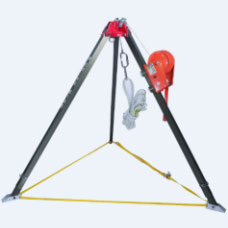 用于高處、懸崖及井下等救援作業(yè)。金屬框架,備有手搖式絞盤,手動絞盤額定提升重量1600N,手搖力175N,繩索長度30米,質量27.4kg。符合《救援三角架試驗大綱》標準。