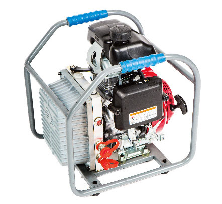 符合國家標準GB/T17906-1999《液壓破拆工具通用技術條件》,機動泵的總質量23.6kg,機動泵對工具進行密封性能試驗,工具閉合或全開狀態(tài),在63MPa條件下,應無液壓油泄漏。機動泵額定工作壓力63MPa,高壓流量0.4L/min,低壓工作壓力10 MPa,低壓流量1.3 L/min。