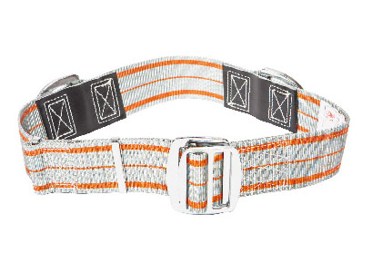 ·消防安全腰帶是一種緊扣于腰部的帶有必要金屬零件的織帶,用于承受人體重量以保護(hù)其安全,適用于消防員登梯作蚜口逃生自救。消防安全腰帶帶長(zhǎng)連續(xù)可調(diào),由織帶、內(nèi)帶扣、外帶扣、環(huán)扣和兩個(gè)拉環(huán)等零部件構(gòu)成。消防安全腰帶的設(shè)計(jì)負(fù)荷為1.33N,其質(zhì)量不超過(guò)o.85kg??棊橐徽?,無(wú)接縫,其寬度為{70±1)mm。具有靜負(fù)荷性能、抗沖擊性能、耐高溫性能以及金屬零件的耐腐蝕性能。