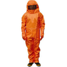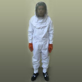 用于防蜂類等昆蟲侵蝕的專用防護(hù),面罩為聚碳酸脂具有良好的防護(hù)性能。材料為用雙面涂覆耐腐蝕的高強(qiáng)度錦絲綢布為基材,制成整體連身式結(jié)構(gòu),配以獨(dú)特防蜂面具與橡膠手套及消防安全帽配套使用。